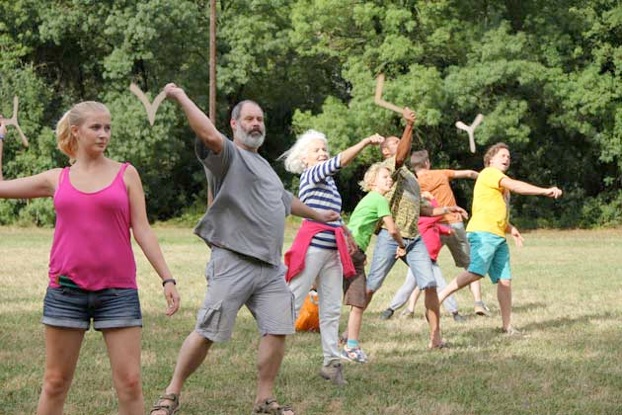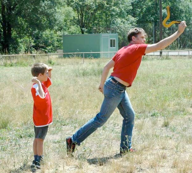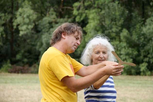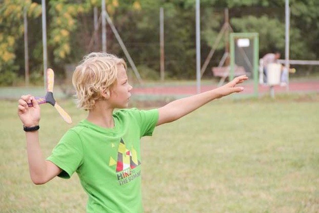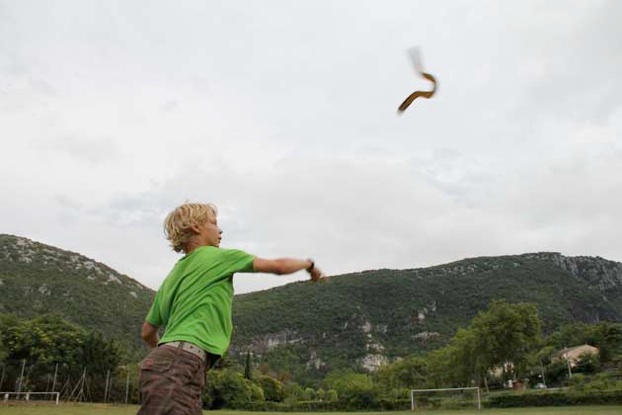 3.Le lancer : l’apprentissage se fait sur un espace dégagé et dédié. Cette phase se déroule en toute sécurité en respectant des règles strictes : un seul boomerang lancé à la fois, chacun son tour.